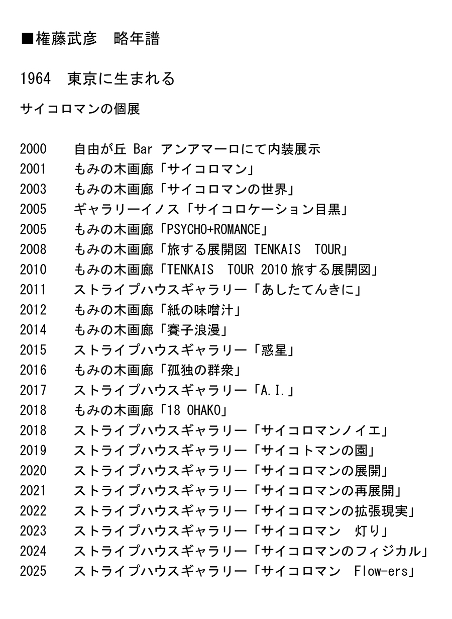Takehiko Gondo 権藤武彦 立体・絵画・写真展 サイコロマン Flow-ers 2025年7月23日(水)〜30日(水) AM11:00~PM6:30 最終日はPM5:30まで 会場は3Fギャラリー