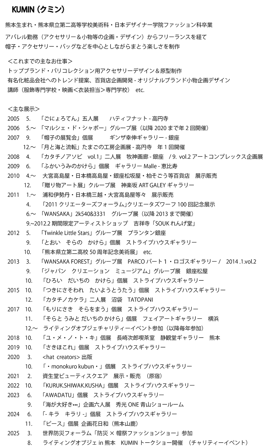 KUMIN FASHION ART クミン ファッションアート sunanokuni no monogatari 2025年9月2日(火)〜11日(木) 会場は3Fギャラリー KUMINのHPはこちら→●